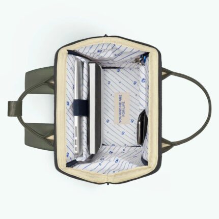 Cabaia çanta, krem ve haki renktir. Model Özellikleri Boyutlar (18L) : 27 cm x 41 cm x 16 cm Ağırlık : 0,89 kg Dizüstü bilgisayar bölmesi: 13"'e kadar Ömür boyu garanti Ön cepler için hırsızlık önleme sistemi Geniş açılı açıklık Arkada gizli cep Vegan, suya dayanıklı Bavulu sabitlemek için kayış Dolgulu ve nefes alabilen omuz askıları Bu sırt çantasında 2 adet değiştirilebilir cep bulunmaktadır: Yeşil (Vila Verde) + Desenli Kaki (Linen Museum) Ana dış kumaş: %100 geri dönüştürülmüş polyester Kaplamalı kumaş: %100 poliüretan İç astar : %100 polyester