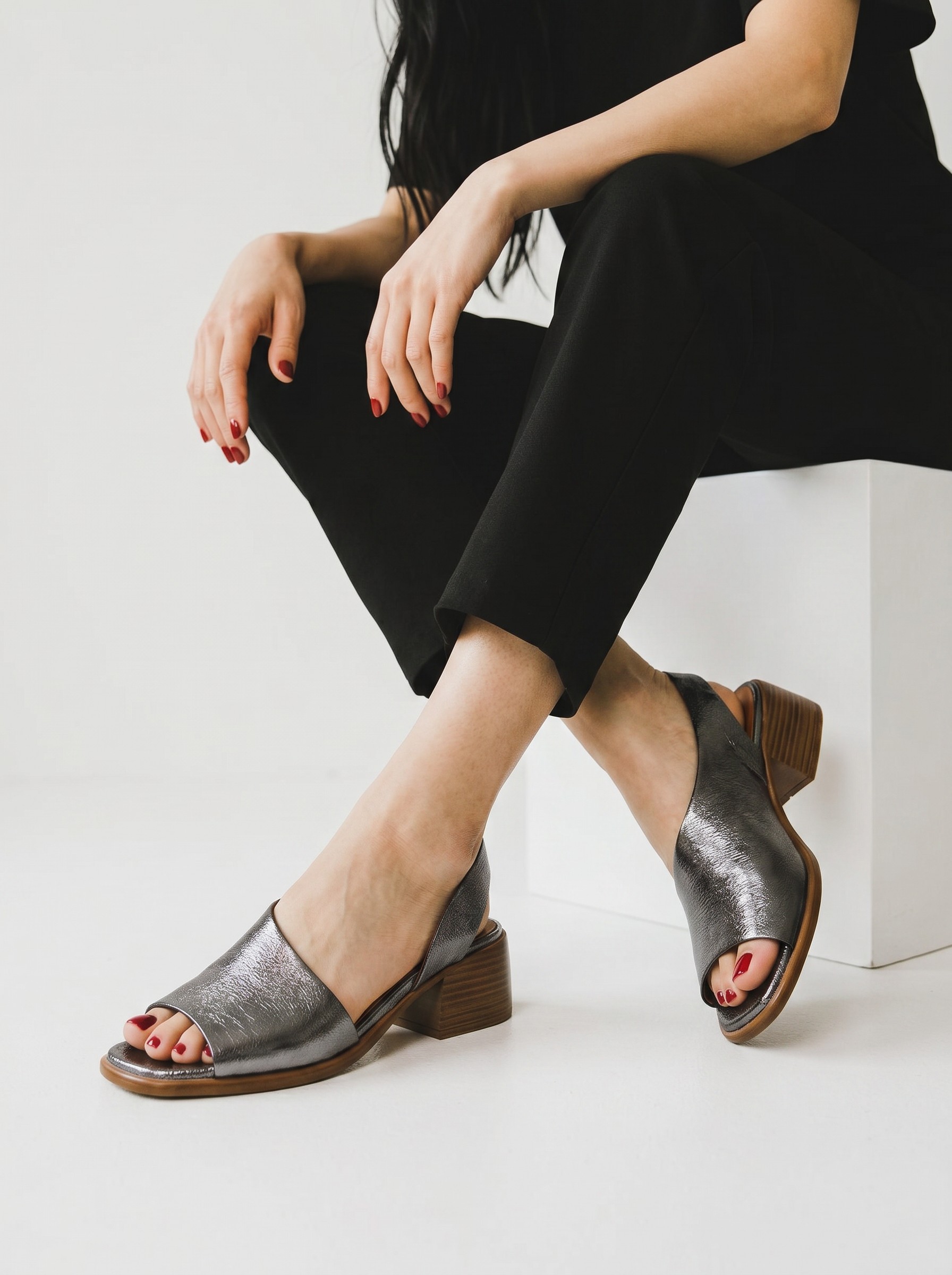 000519 Shes kadın Deri Günlük Topuklu Sandalet 000519