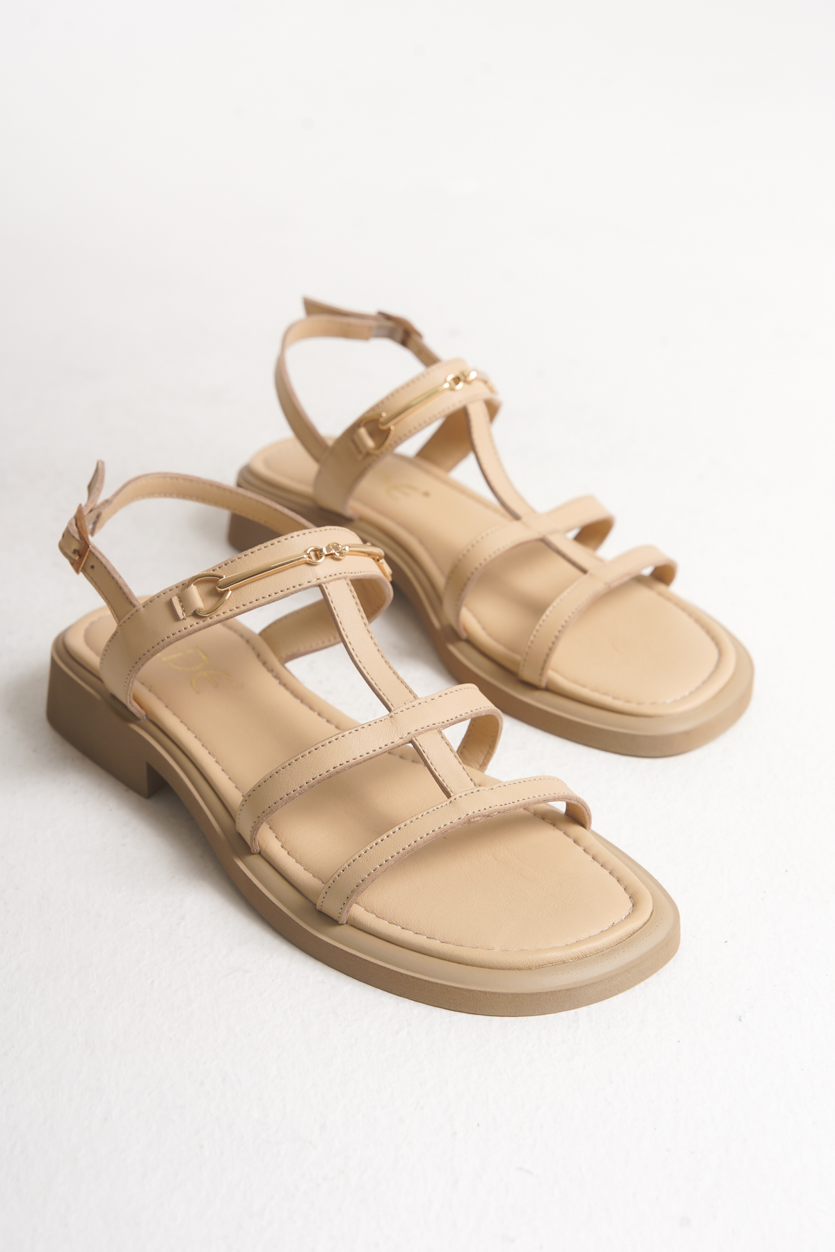M-565-B Sur Sandalet Kadın Koyu Bej Deri Fantazi Sandalet M-565-B