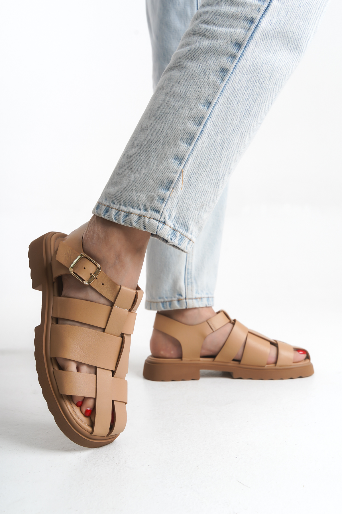 Yazın en sıcak günlerinde bile konforundan vazgeçmek istemeyenler için tasarlanan bu şık sandalet, %100 deri malzemesi ve Eva tabanıyla uzun süreli rahatlık vadediyor.Cinsiyet KadınÜrün Cinsi DüzTopuk Boyu 2 cmTaban Yüksekliği 2 cmÜrün Malzemesi DeriTaban Malzemesi Eva Yıl sezon İlkbahar YazMenşei Türkiye