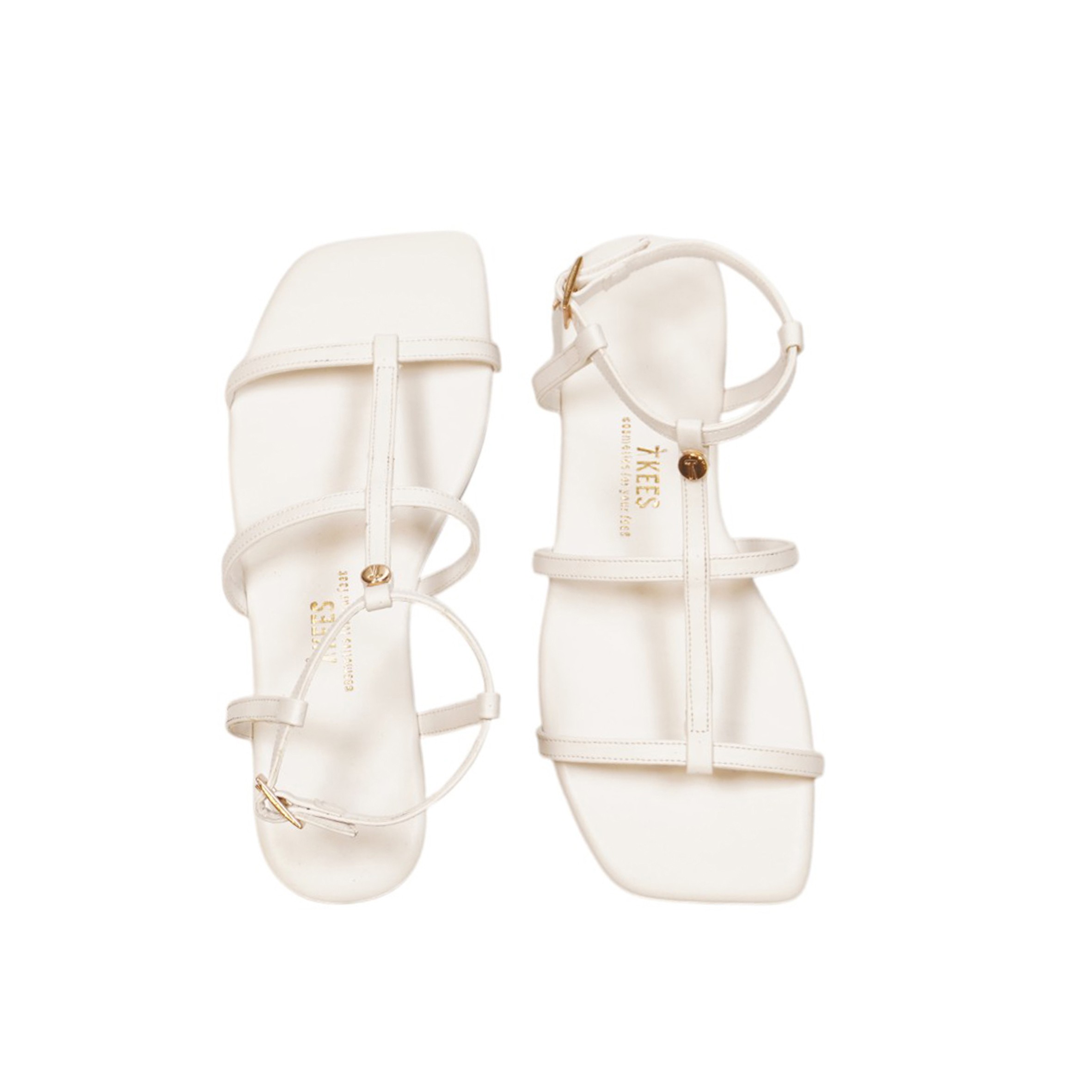 TK-8304 Tkees Kadın Beyaz Kare Burun Düz Bilekli Sandalet TK-8304
